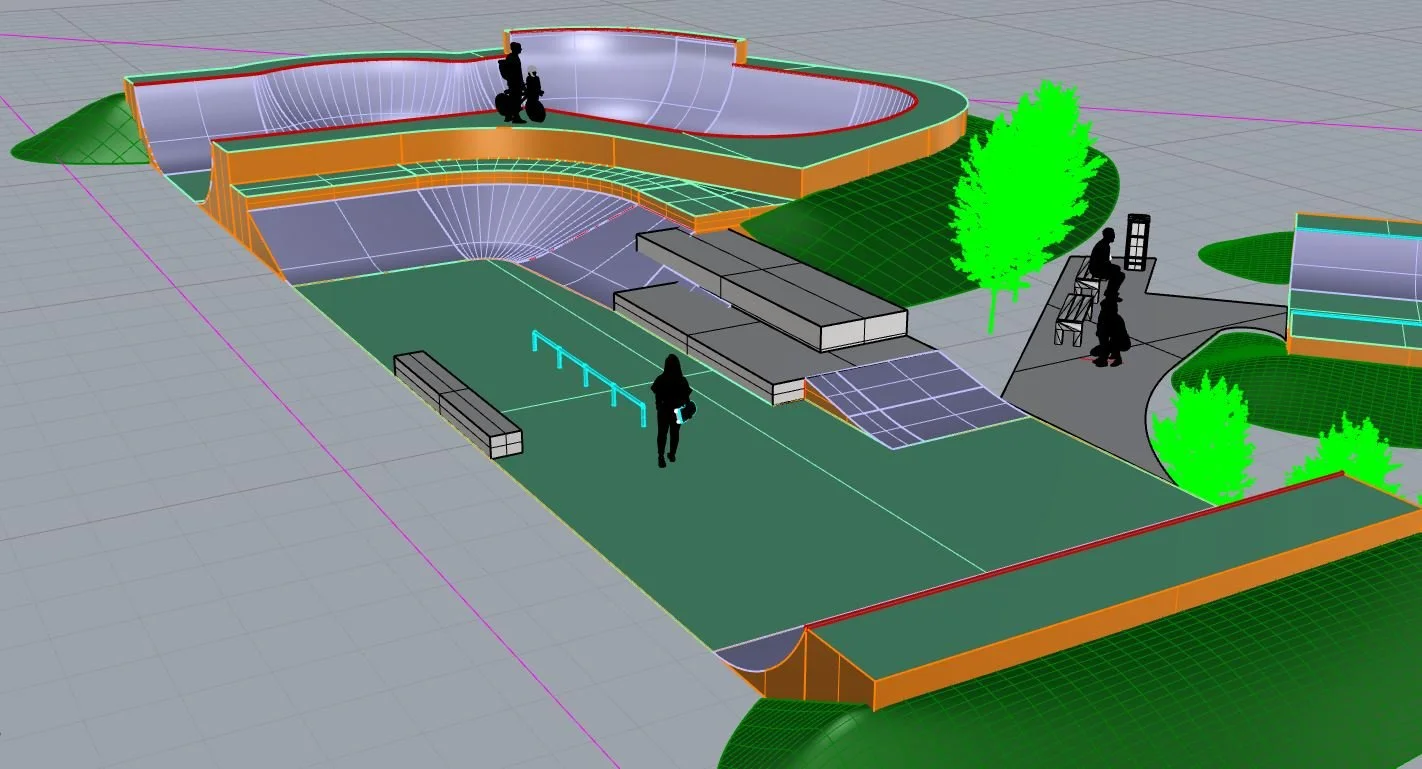 UPDATE 13th June 2025: Hello, and thank you for all of your comments and interest in the development of the design to date! We have now received the ground investigation results, which concluded that we are not able to design the skatepark to be excavated below ground level. This is due to the ground infiltration being poor and the water table being higher than the lowest part of the current bowl design. The remedy for this is to design the bowl ground level-up. The impact of this does not have to reduce the design quality – it simply means that we are currently reconfiguring the layout to suit a bowl that will not require any finished slab levels below the existing ground level. We will be posting the revised design based on your comments to date from the previous design iteration, and the new design parameters. Thank you for your continued support.